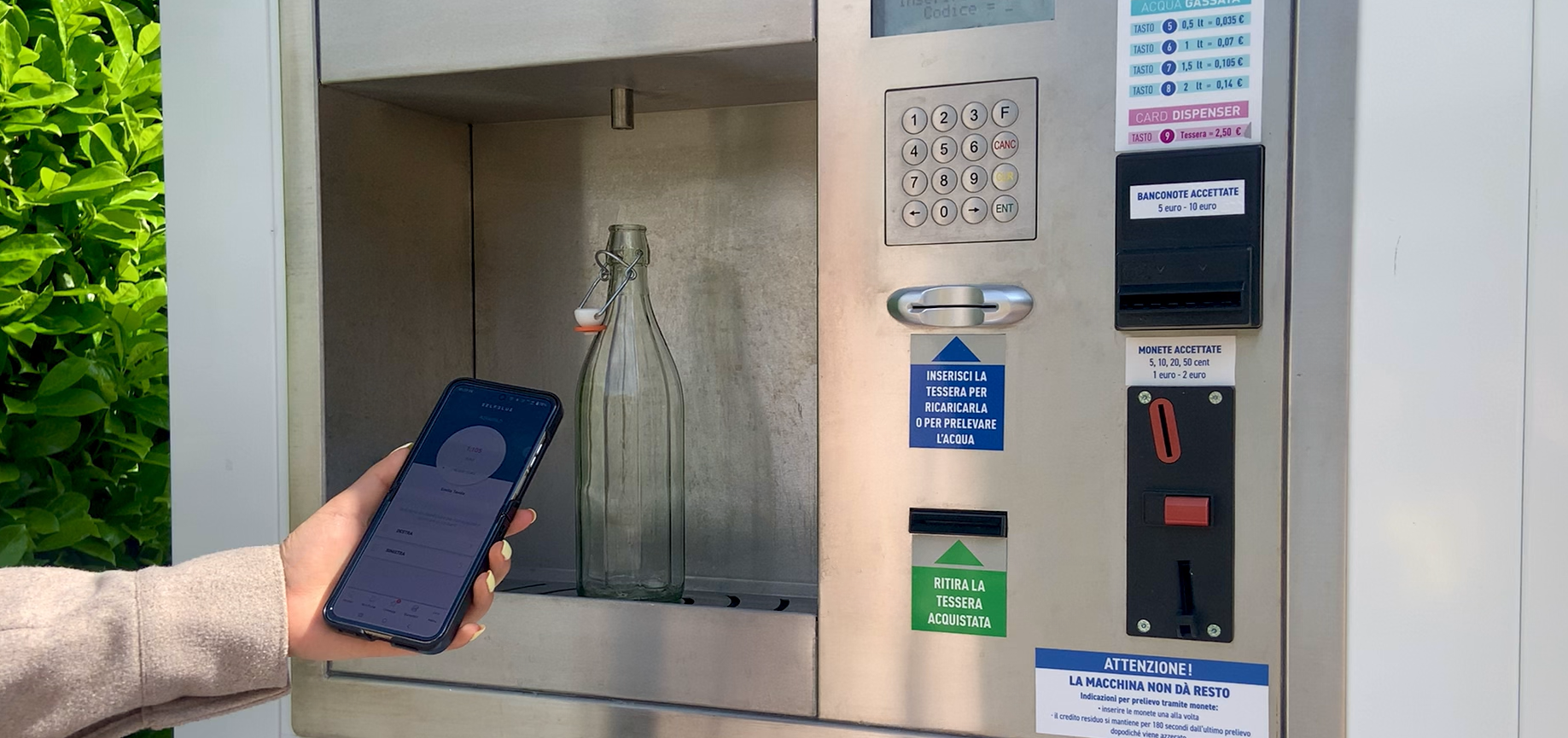 Le Casette dell’acqua sono dei distributori automatici che accettano monete e banconote (ove possibile)… ma non solo!